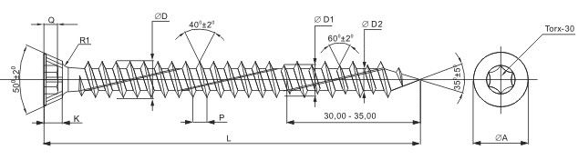 Саморіз потайний із буром, "ВІКОННИЙ", DIN 7504 K